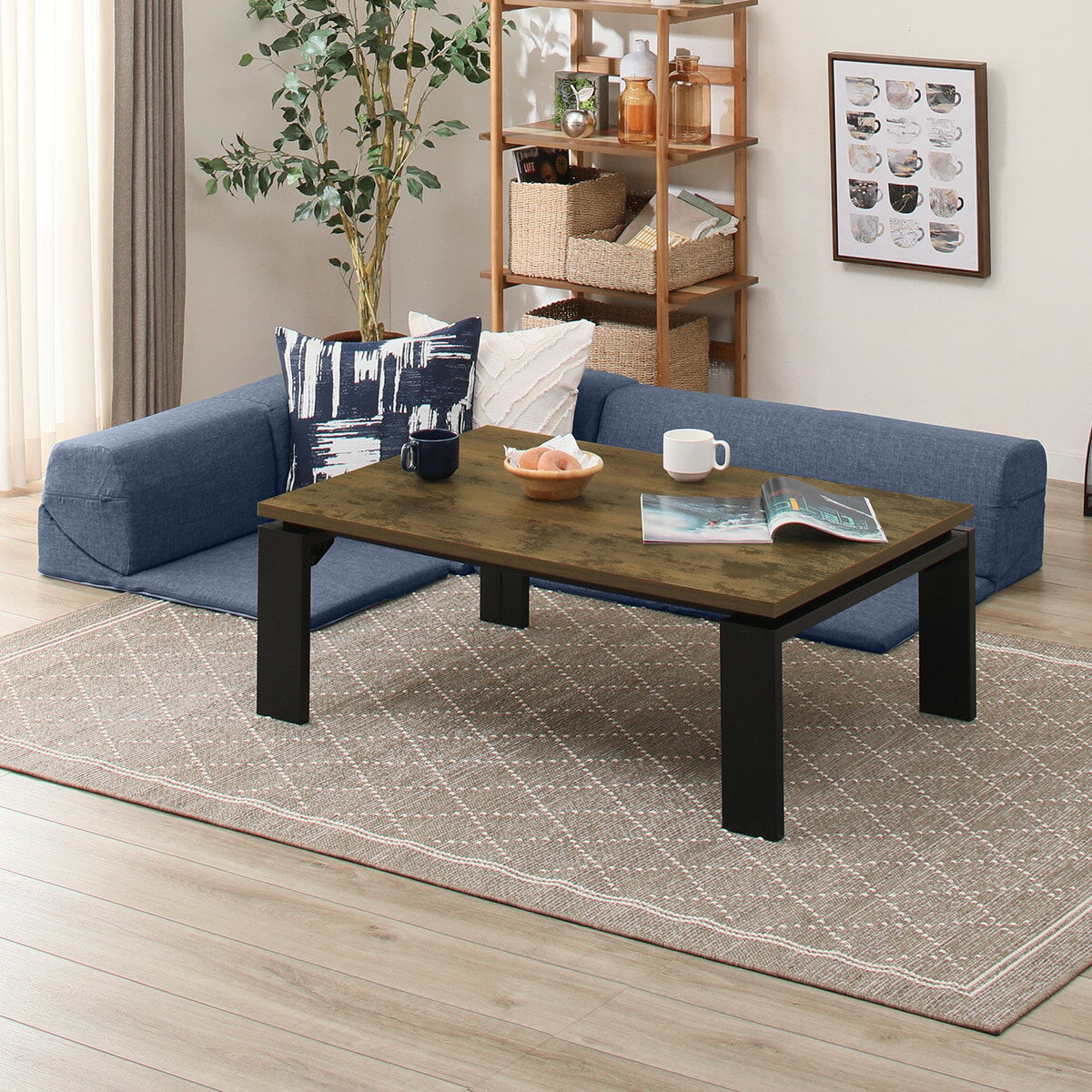 こたつ+ローソファセット(フラットヒーター フロットN105VBR/コロネルNV) ニトリ 【配送員設置】 【【こたつ】5年【ローソファ】1年保証】